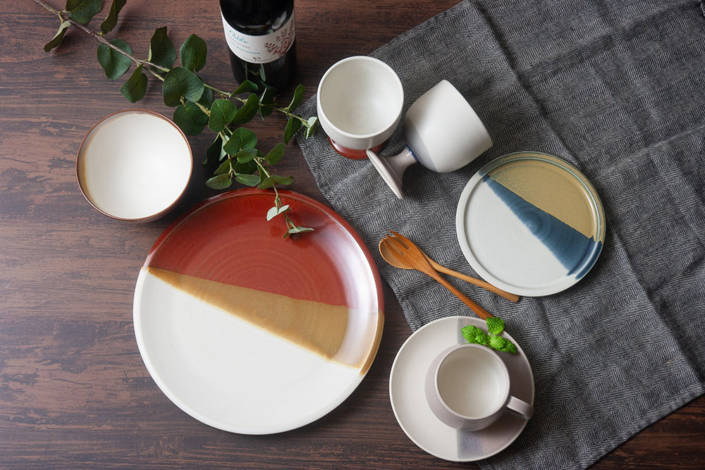 色合いや質感にこだわり、また陶磁器らしい釉薬の表情の変化をデザインに取り入れるようにしています。